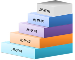 知識工程的建設是一個系統工程,同時,也如同生物系統一樣,是一個從低級向高級發展的過程。億維訊公司提出了知識工程實施的成熟度模型(Knowledge Engineering Maturity Model,簡稱KEMM),來衡量一個組織綜合運用知識、實現目標的能力。KEMM模型定義了五個級別,分別為1-無序級、2-覺悟級、3-共享級、4-涌現級和5-適應級。