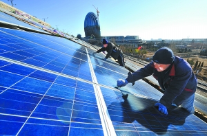 懷柔雁棲湖堤壩上,正在建設的太陽能發電廠工程接近尾聲。據悉,該工程用近萬塊164cm×99cm太陽能板組成,建成后將為周邊酒店提供環保能源,也將成為雁棲湖風景區一道環保生態風景,該工程規模為世界堤壩上建設太陽能發電廠之最。