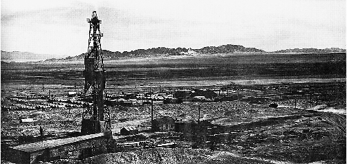 1958年9月13日,一股巨大的油流在冷湖五號構造地中四井沖天而起,日噴原油800多噸,3天3夜噴勢不減,井場周圍油浪翻滾。這一年,冷湖油田生產原油30萬噸,占當時全國原油總產量的12%以上,為年輕的共和國注入了新鮮血液。冷湖由此成為繼玉門、四川、克拉瑪依之后的第四大油田。當年年底,冷湖煉油廠煉制的成品油運往西藏,供應邊防部隊。