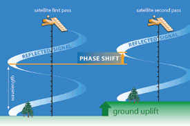 InSAR has the ability to image large swaths of the earth’s surface and provide periodic updates on ground deformation. A typical InSAR scene can cover an area of 3,860 sq miles (10,000 sq km). Accuracy with just two scenes is in the centimeter range, but millimeter accuracy can be achieved by stacking many months of data.
