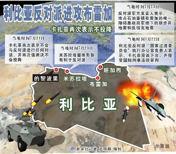 新華網北京7月24日電 利比亞反對派武裝近日集中攻打具有戰略意義的東部石油重鎮布雷加,并表示一旦掃雷完畢進入布雷加將“輕而易舉”。利比亞領導人卡扎菲21日發表講話,表示不與反對派進行任何對話,再次強調不會投降。一些國家對解決利比亞危機態度不一。