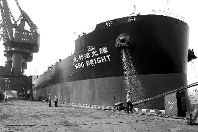 摘要: 9月28日,滿載重晶石的巴拿馬型船舶北部灣光輝號,從廣西防城港首航駛往休斯敦新奧爾良港,成為廣西第一艘投入運營的遠洋船舶,填補了廣西沒有遠洋船舶的空白。圖為北部灣光輝號貨船正在防城港13號泊位碼頭裝貨。