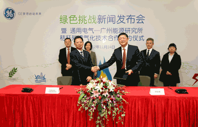 GE與“綠色挑戰(zhàn)”中國獲獎者簽署首個商業(yè)合作協(xié)議,將和中國科學院廣州能源研究所合作推動生物質秸稈殘渣氣化技術的商業(yè)化應用。2012年11月14日,上海——全球最大的多元化企業(yè)通用電氣(GE)公司今天宣布,將與中國領先的清潔能源技術研究機構中國科學院廣州能源研究所(GIEC)進行合作,為其正在研發(fā)和完善過程中的生物質秸稈殘渣氣化技術的進一步開發(fā)和商業(yè)化應用提供支持。該技術旨在提高生物質能發(fā)電的效率,是GE發(fā)起的“綠色挑戰(zhàn)”中國活動的參賽項目之一。