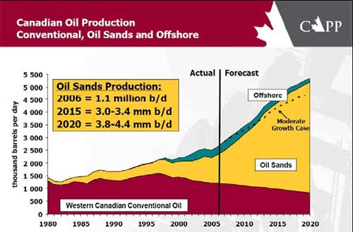 目前為止,“落基山能源走廊”中的最令人歡欣鼓舞的就是對(duì)加拿大阿爾伯達(dá)省油砂資源的開發(fā)。油砂作為北美地區(qū)新興能源的標(biāo)志,主要集中在加拿大的阿爾伯達(dá)省,儲(chǔ)量達(dá)到1.7萬億~2.5萬億桶,其中1750億桶為可采儲(chǔ)量。這些資源將使加拿大一躍成為石油儲(chǔ)量?jī)H次于沙特的國(guó)家。經(jīng)過半個(gè)世紀(jì)的探索和研究,油砂的開發(fā)與提煉技術(shù)已經(jīng)相當(dāng)成熟,開發(fā)成本也已降至20美圓/桶,這在當(dāng)前的國(guó)際油價(jià)已飆升至100美圓/桶的形勢(shì)下顯示出很強(qiáng)的經(jīng)濟(jì)性!許多大型油砂項(xiàng)目紛紛上馬,相應(yīng)的改質(zhì)廠、煉廠和管道設(shè)施建設(shè)蒸蒸日上。加拿大石油生產(chǎn)協(xié)會(huì)預(yù)計(jì)從油砂瀝青中提取合成原油的產(chǎn)量將從2006年的110萬桶/日提高到2020年的400萬桶/日。盡管人口和經(jīng)濟(jì)活動(dòng)只占全加拿大的十分之一,但是阿省的各項(xiàng)經(jīng)濟(jì)增長(zhǎng)指標(biāo)都位列全加拿大的前茅(2006年7%,2007年預(yù)計(jì)為5%)。道明銀行的報(bào)告中說,加元的走勢(shì)也得益于資源的開發(fā),加元兌美圓匯率已經(jīng)從2002年的0.62漲到了現(xiàn)在的0.96,是距上一次70年代的石油大開發(fā)以來的最高峰。美國(guó)的油砂儲(chǔ)量在600~800億桶,其中三分之一在猶他州,但從在技術(shù)上講,開發(fā)難度要高過加拿大的油砂。