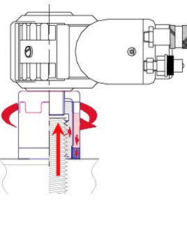 HYTORC-CLAMP專用驅動器可在握住內部螺紋套的同時轉動外部轉動套。此時,內部的螺紋套隨螺栓被拉伸而上移。不產生任何扭曲力及偏載。