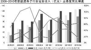 根據統計,光伏類公司在2010年四個季度的主營業務收入仍然延續超預期增長,實現主營收入總額386億元,季度同比增長均超過60%;實現利潤總額56億元,季度同比增長接近90%。風電類公司則出現疲態,雖然年均增長仍維持50%的水平,但三、四季度的收入和利潤的同比快速下滑,顯示行業可能已經跨過了行業的高速增長期,步入相對低速的增長軌跡。核電類公司在過去一年的業績表現呈現出前高后低,但總的來說,增長速度要明顯快于2009年。而利潤總額在2009年第二季度的非正常增長主要是由于東方電氣(600875,股吧)在2008年受地震影響帶來的數據異常。