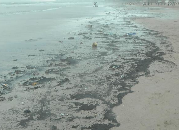印度孟買沉船漏油污染海岸生態