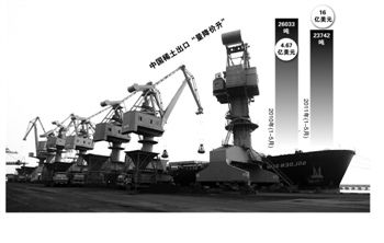 在稀土價格持續(xù)上漲之際,中國稀土出口額也迅速上升。8月5日,中國有色金屬工業(yè)協(xié)會公布,今年上半年,在出口量沒有明顯增加的情況下,我國稀土金屬產(chǎn)品出口額達(dá)15.4億美元,同比增長9.3倍。