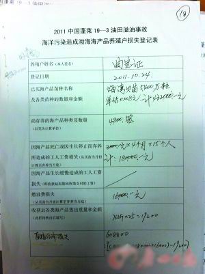 據律師賈方義介紹,今年6月4日,渤海灣蓬萊19-3油田發生溢油;7月5日國家海洋局公布蓬萊19-3附近海域劣四類海水水質840平方公里、海水油濃度超過背景值40倍,最高濃度達到歷史背景值的86.4倍;9月15日,康菲公布的溢油總量為3320桶;11月11日,國家海洋局公布污染海洋面積達6200平方公里。賈方義說,溢油事故造成渤海海水質量急劇下降、大量微生物及浮游生物死亡,導致包括本案30名原告在內的渤海灣養殖戶的扇貝等大量海產品死亡、部分生長停滯、部分生長緩慢。“要求賠償2000萬元我們是經過嚴格計算的,主要包括養殖戶購買扇貝苗、人工、油費等各項支出等直接經濟損失以及假如沒有受災正常出售的可期收益。”