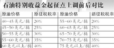 5日晚間,三家石油公司均公告了財(cái)政部上調(diào)特別收益金起征點(diǎn)的消息。依據(jù)通知財(cái)政部決定從2011年11月1日起,將石油特別收益金起征點(diǎn)從40美元提高至55美元。石油特別收益金俗稱“暴利稅”,起征點(diǎn)提高意味著石油公司將少向政府交稅。