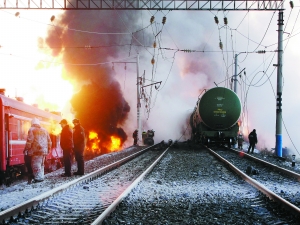 報道說,當地時間31日5時30分,這列共掛有68節車廂的運油車在距離阿穆爾州布列亞車站6公里處發生事故,17節車廂出軌,13個油罐傾覆起火。初步估計事故造成100至200噸石油溢出。