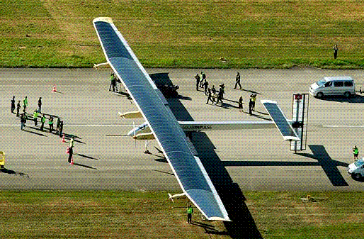 “太陽驅動”號主機翼翼展63米,覆蓋大約1.2萬塊太陽能電池板。這些太陽能電池板白天充電,所存儲電量為飛機夜間飛行提供動力。5月3日,“太陽驅動”號從美國西海岸城市舊金山附近出發,自西向東飛行,先后在亞利桑那、得克薩斯、密蘇里和俄亥俄等州停留。結束紐約之行后,“太陽驅動”號成為首架不依靠燃料、日夜兼程飛越美國的太陽能飛機。
