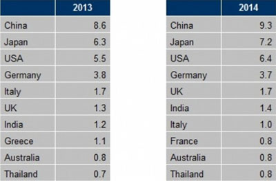 然而,最大的修改是日本。IHS今年早些時候預計,日本將成為第四大市場,預計安裝量將超過3.5GW。在其最新的預測中,預計日本將安裝6.3GW,成為繼中國后第二大市場。