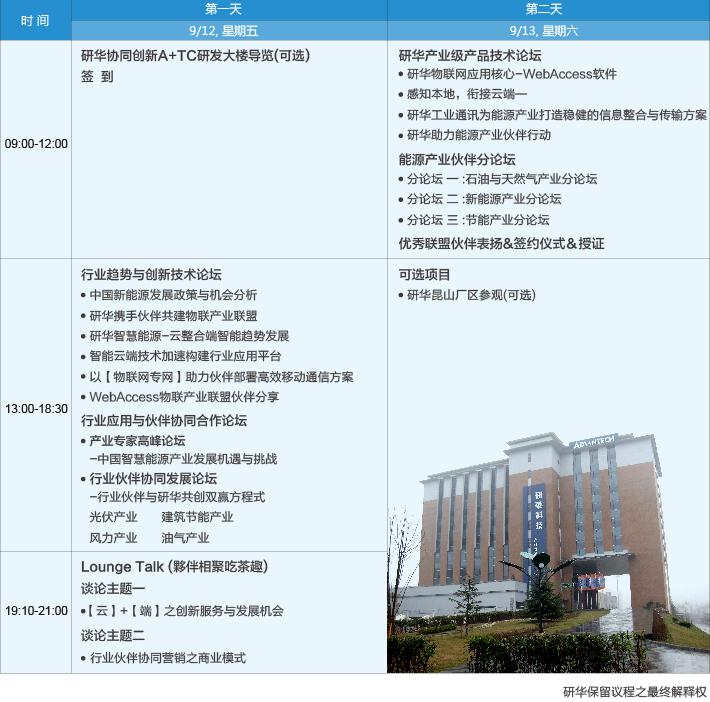 研華科技—2014年9月12日-13日,全球領(lǐng)導(dǎo)品牌研華科技與業(yè)界先進(jìn)將于昆山(研華協(xié)同創(chuàng)新研發(fā)中心A+TC暨智慧城市與物聯(lián)網(wǎng)應(yīng)用展示中心)共同舉辦“研華『云』+『端』能源高峰論壇”,會(huì)議以“新能源、油氣與節(jié)能物聯(lián)產(chǎn)業(yè)開(kāi)發(fā)新契機(jī)”為主題,我們期盼通過(guò)此次會(huì)議,與您一同探討物聯(lián)網(wǎng)產(chǎn)業(yè)中【云】+【端】技術(shù)對(duì)能源產(chǎn)業(yè)的發(fā)展與挑戰(zhàn)。