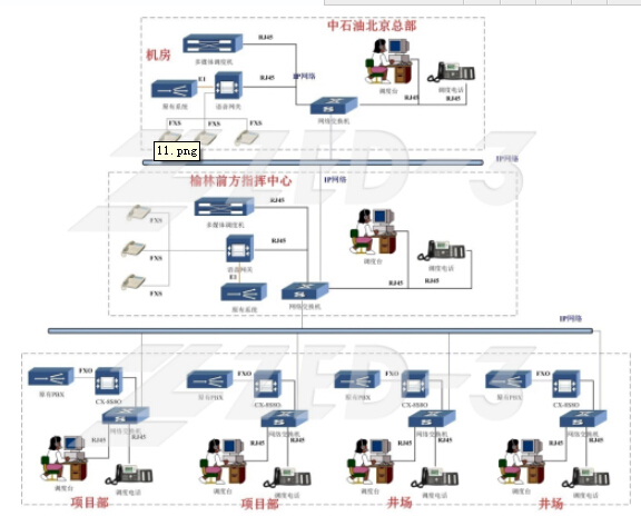針對中石油長城勘探過程中對通信支撐平臺的需求,捷思銳為其提供了一套基于NGN架構的多媒體調度通信系統,本系統在中石油北京總部、榆林指揮中心、項目部及井場部署,采用三級調度架構,總部部署的核心系統集中信令交換、媒體交換、呼叫路由、業務調度、會議控制、數據交互及報表等功能于一體,為地方指揮中心和項目部及井場作業人員提供完善的通信保障手段;該系統還可以充分利舊,與原有通信系統無縫融合,解決不同崗位人員通信的壁壘。系統不僅支持豐富的多媒體調度功能,還可以與視頻監控系統、視頻會議系統、模擬對講網絡、數字集群網絡、PSTN電話網絡、衛星網絡等充分融合,是一個“多網互聯、多媒體互聯、多業務互聯”多級架構的通信整合平臺系統。
