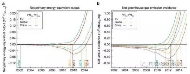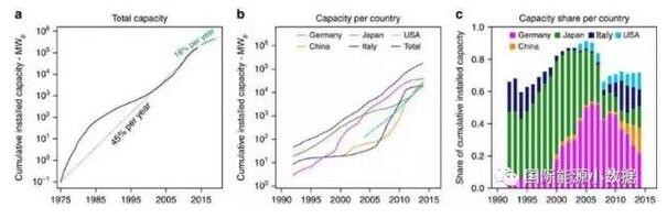 在考慮了光伏組件生產(chǎn)時(shí)間與地點(diǎn)的情況下,Wilfried van Sark博士的團(tuán)隊(duì)計(jì)算得出1975年全球光伏組件在全生命周期內(nèi)(假設(shè)為30年)的碳排放平均為400-500克/千瓦時(shí),而2015年全球平均的光伏組件在全生命周期內(nèi)的碳排放僅為20克/千瓦時(shí)。1975年每塊光伏組件需要20年的運(yùn)行時(shí)間才能回收生產(chǎn)該光伏組件所消耗的能量,而2015年光伏組件的能量回收期不到2年?傮w來(lái)看,每當(dāng)全球光伏裝機(jī)容量加倍,光伏組件能耗就下降生產(chǎn)就下降大約12%,碳排放下降17-24%。