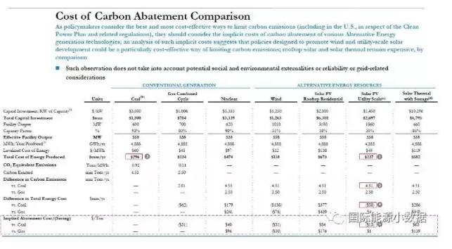 #屋頂光伏:3190兆瓦屋頂光伏每千瓦投資2000美元,容量因子30%,全周期度電成本為13.8美分/千瓦時,碳排放不計;相對煤電減排成本84美元/噸。